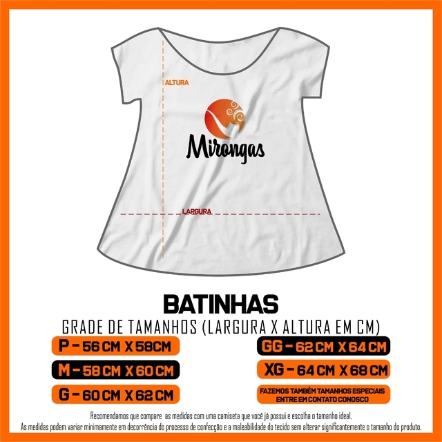 Meça aquela sua camiseta que mais usa e compare com a nossa tabela.